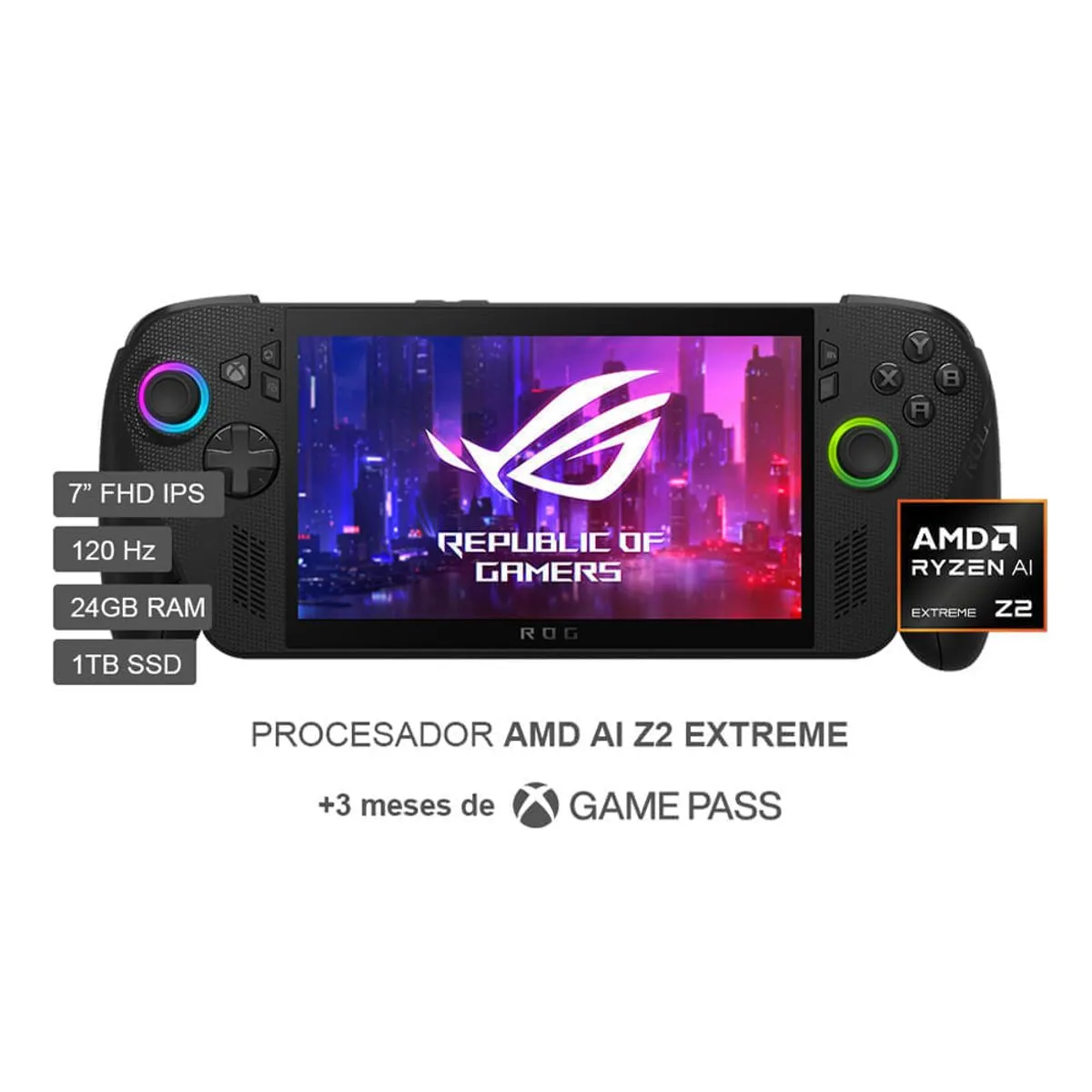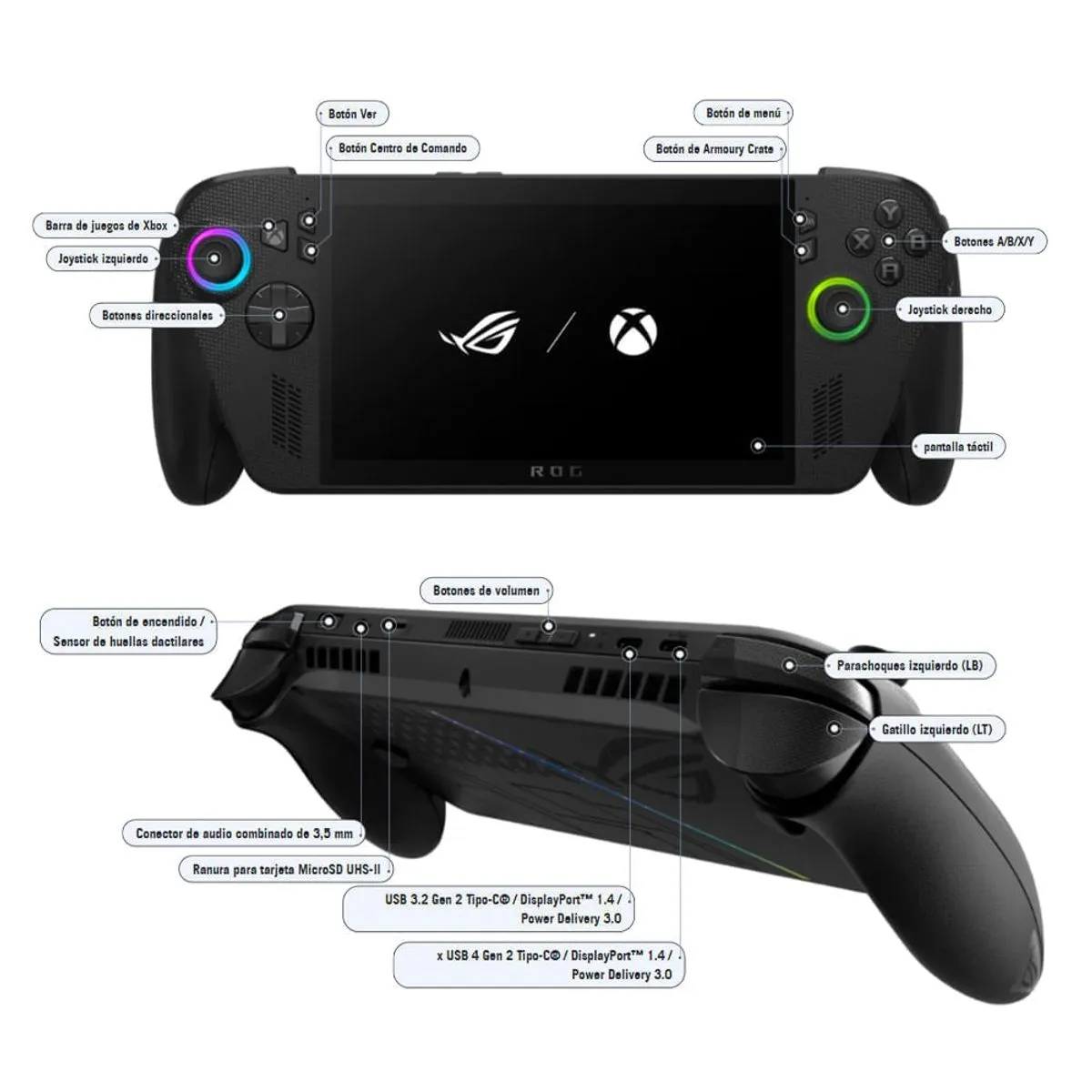 Consola portátil Asus ROG Xbox Ally X 2025 con AMD Ryzen AI Z2 Extreme, 1TB SSD, 24GB RAM, 7″ FHD 120Hz, Win11 + 3 meses Xbox Game Pass