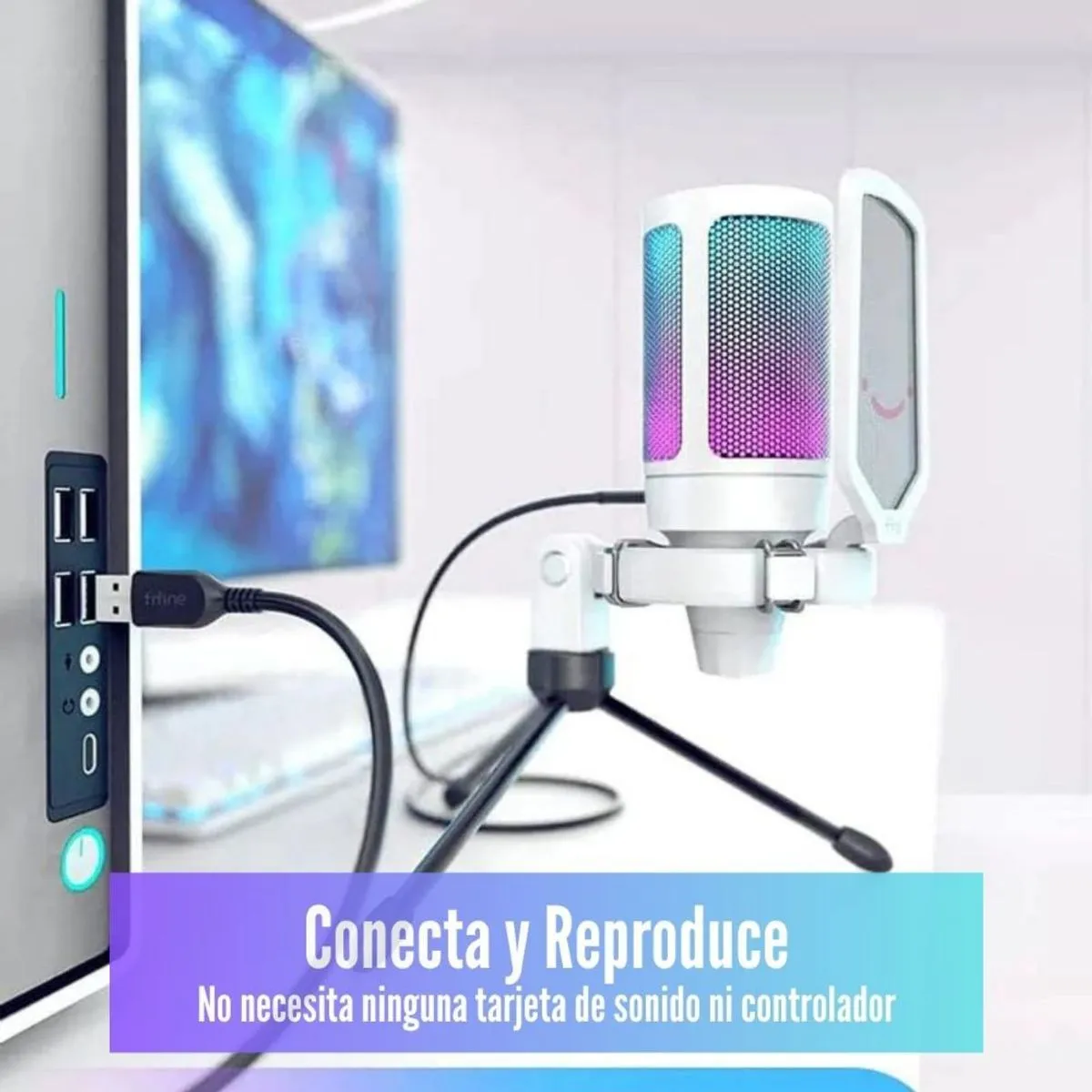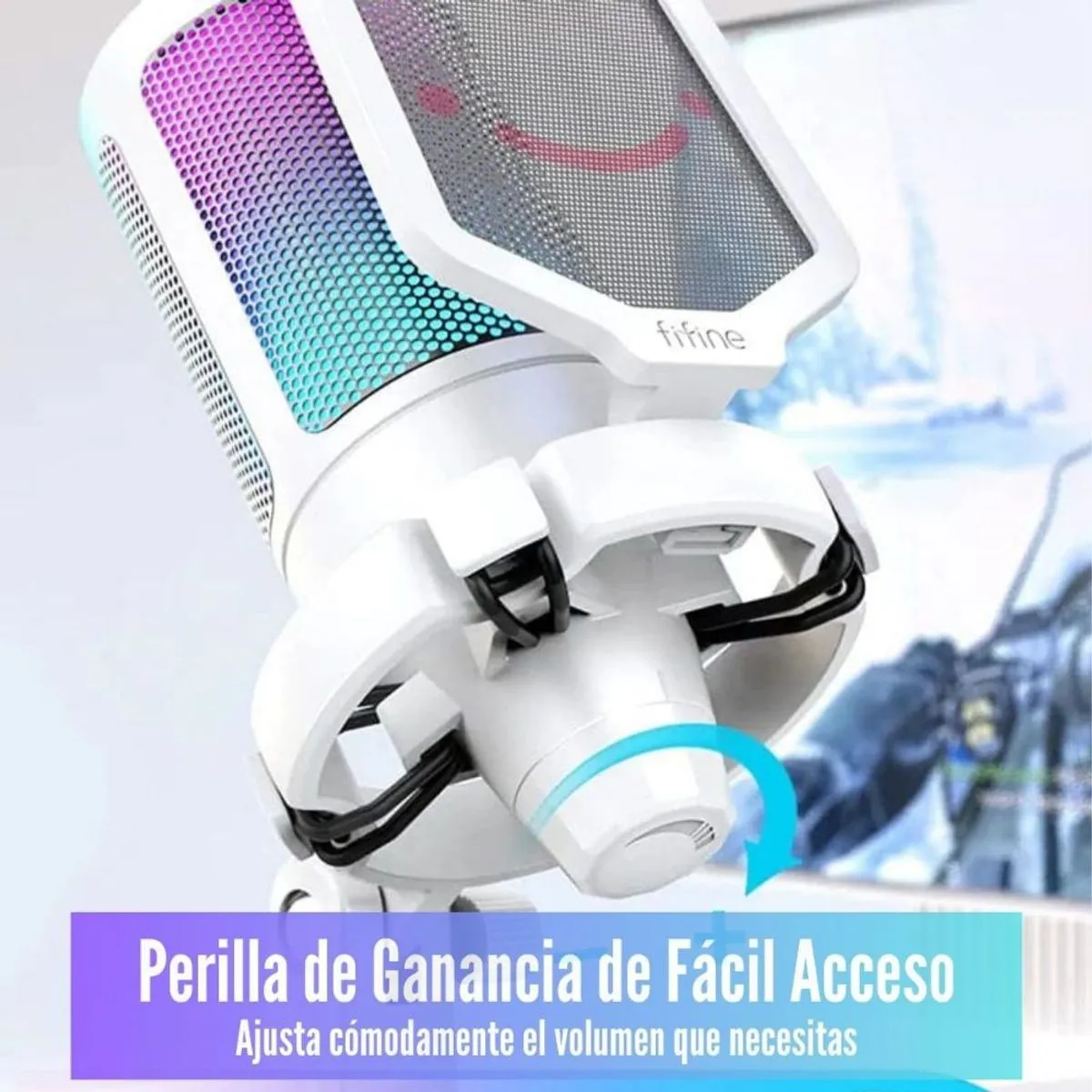 Micrófono Fifine Ampligame A6V, RGB, USB Cardioide, blanco